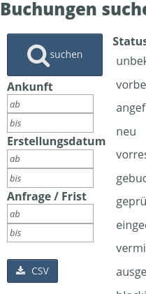 Gehen Sie zu Info/Buchungen: Info/Buchungen Wählen Sie hier bei „Anfrage / Frist“ den Zeitraum, in der die Anfrage bzw. Vorreservierung abläuft: